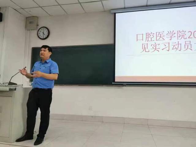 6月10日下午,口腔医学院在A411教室举办2019级本科生见习和2018级部分本科生实习的动员大会。口腔医学院班子成员、辅导员老师和即将踏上见实习岗位的同学们参会。