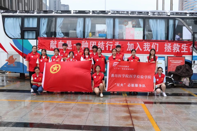 6月27日,医学检验学院“星火志愿服务队”与潍坊市中心血站合作,组织前往潍坊市泰华城献血点开展以“献血显温情,服务暖人心”为主题的献血车志愿服务活动。星火志愿服务队指导老师、16名星火志愿服务队成员以及潍坊市中心血站医护人员参加。