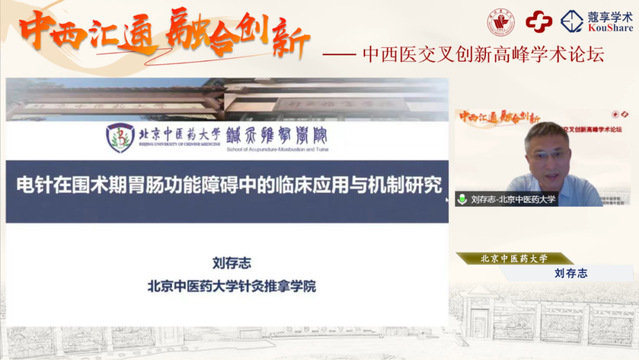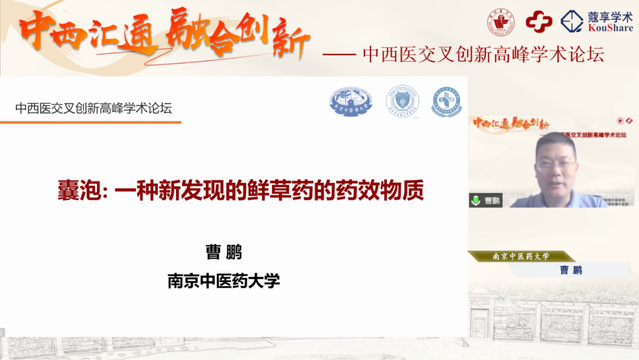 本次会议旨在为中西医学者提供学术交流及互助合作平台,共同探讨中医药多学科融合创新研究模式,从而进一步推动中医药事业的高质量发展,加强多学科融合对中西医结合的发展助力。北京中医药大学刘存志教授作《电针在围术期胃肠功能障碍中的临床应用与机制研究》报告、北京大学屠鹏飞教授作《中药化学生物学的理论与应用》报告、北京中医药大学东直门医院商洪才研究员作《数智融合驱动中医药循证研究》报告、中国中医科学院西苑医院徐浩教授作《冠心病“瘀毒”创新病因理论体系的构建与转化研究》报告、清华大学李梢教授作《大数据与人工智能时代的中医药网络药理学研究》报告、上海中医药大学附属龙华医院贾立军研究员作《靶向蛋白质代谢途径在肿瘤治疗中的应用》报告、复旦大学王鹏教授作《RAS突变肿瘤干预靶标与天然药物筛选》报告、南京中医药大学曹鹏研究员作《囊泡:一种新发现的鲜草药的药效物质》报告、南京大学孔令东教授作《中药调控免疫代谢研究》报告。