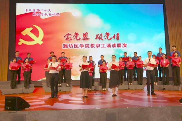 奋斗百年路,启航新征程。“念党恩 颂党情”主题诵读会在《党啊,亲爱的妈妈》悠扬的歌声中圆满结束。本次诵读会激发了广大教职工的爱党热忱、爱国情怀,使学校教职工接受了一次爱国主义教育,更加坚定了跟党走的政治信念。大家一致表示,要把党史学习教育同对照现实、推动工作结合起来,坚定医科大学创建目标,继续保持奋发有为的精神状态, 勇于创先争优、善于作为,为学校的高质量发展凝聚正能量,以优异成绩献礼建党101周年,迎接党的二十大胜利召开。