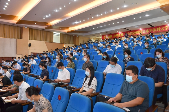 院长管英俊在讲话中指出,2022年是党的二十大召开之年,是向第二个百年奋斗目标进军新征程的重要一年,也是全面落实省第十二次党代会部署的开局之年。半年来,全校师生医务员工在校党委领导下,坚持稳中求进的总基调,一手抓疫情防控和校园安全,一手抓办学治校和高质量发展,真抓实干、攻坚克难,各项工作得到顺利推进,取得了可喜成绩。她从高水平医科大学创建与校地融合发展、教育教学水平与科技创新实力、精准引才育才与师资队伍建设、办学资源配置与内部治理体系、党建领航与思政铸魂五个方面,全面总结回顾了学校2022年上半年各项工作。对假期和开学前后推进更名大学工作、推动博士授权单位建设、强化应用型本科高校建设、完善“十四五”规划体系、做好第四次党代会筹备、持续做好常态化疫情防控、加强干部培训和人才队伍建设、强化学生教育服务管理、做好放假前后教育教学工作、强化科研项目管理和成果申报、全力做好条件保障、切实保障校园安全稳定、扎实做好暑期值班值守等13项重点工作进行安排部署。