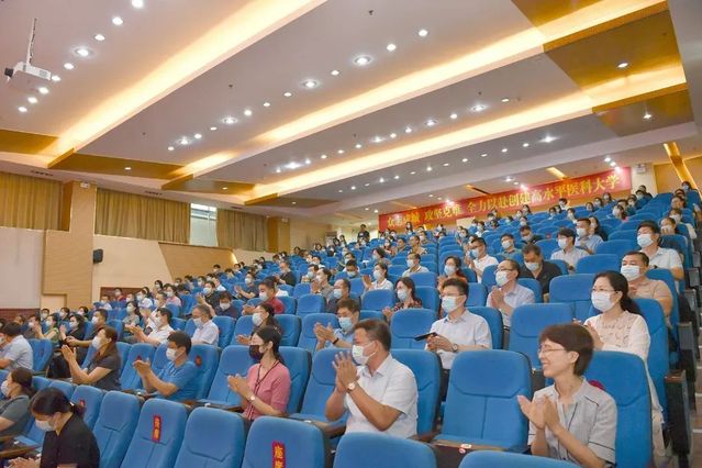 校领导,全体处级干部,教师和学生代表参加报告会。科研处、临床医学院(附属医院)、口腔医学院负责人参加了会见。