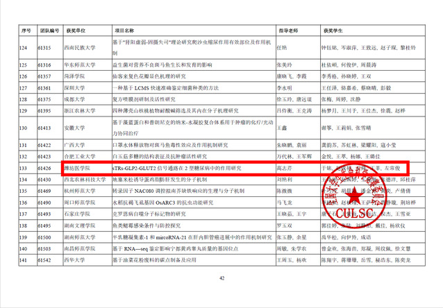 近日,在全国大学生生命科学竞赛(2022,科学探究类)决赛上,由生命科学与技术学院院长高志芹教授指导的,2019级生物制药专业于铭等同学参与的项目《sTRs-GLP2-GLUT2信号通路在2型糖尿病中的作用研究》荣获大赛三等奖。