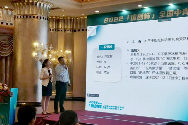 厉丹阳同学现于附属医院伤口造口门诊进行临床专业实践,赛前由潍坊医学院附属医院骨病与创面修复科刘兴龙主任、伤口造口门诊郎文华主任共同对参赛案例进行指导,并带队参赛。