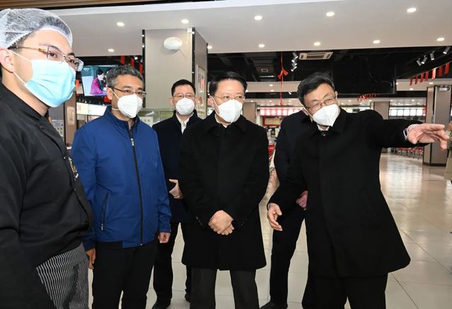 江敦涛来到潍坊医学院杏林餐厅,与学院负责人和餐厅经营管理人员深入交流,认真听取学院食品安全管理基本情况汇报,实地察看明厨亮灶、智慧餐厅,仔细了解食品进出库管理、食品贮存、餐厅厨房环境卫生、加工制作过程控制以及网红食品、大学生创业示范售卖窗口运营情况,对学院食品安全管理经验做法给予充分肯定。