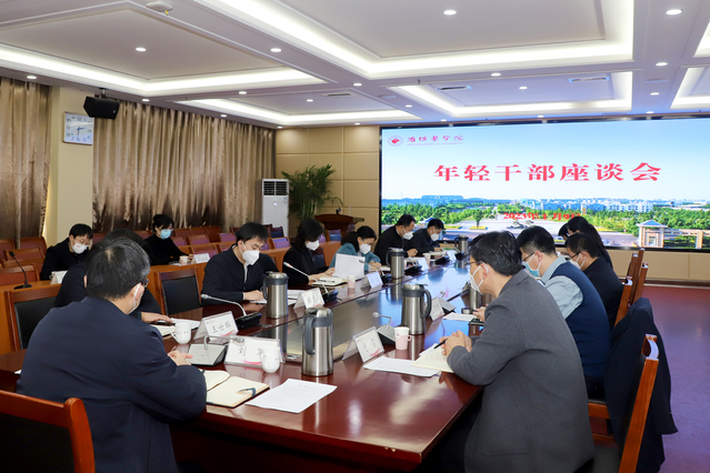 1月9日下午,学校在办公楼四楼会议室召开年轻干部座谈会。学校党委书记刘军出席会议并讲话,党委委员、组织部长王世群出席会议。