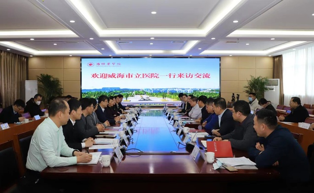 2月8日,威海市立医院李振光院长等一行14人来校交流学习。校党委书记刘军,院长管英俊,副院长卢国华、梁淑娟会见客人进行座谈。