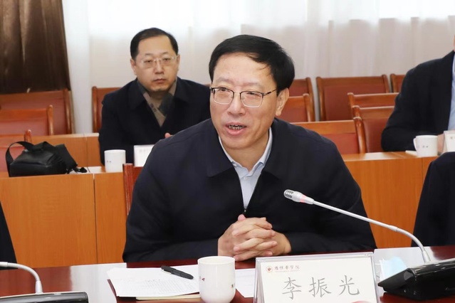 李振光介绍了威海市立医院当前建设现状和未来发展思路,并就我校多年来对医院学科建设、人才支持、行业发展方面的帮助表示感谢,期待双方进一步加强交流合作,深化完善医教协同育人机制,共同建设紧密合作的产教融合体系。