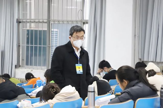 在期末考试的考场,校领导分别对考试组织、考场秩序、考场环境、监考人员履行监考职责及同学考试纪律等进行了巡视和检查,指出在加强考试管理力度的同时,要继续加强考风考纪建设,切实为学生创造公平、公正的考试环境;对于考试过程中出现的问题要及时通报、反馈和整改,总结经验,落实好考试管理责任。