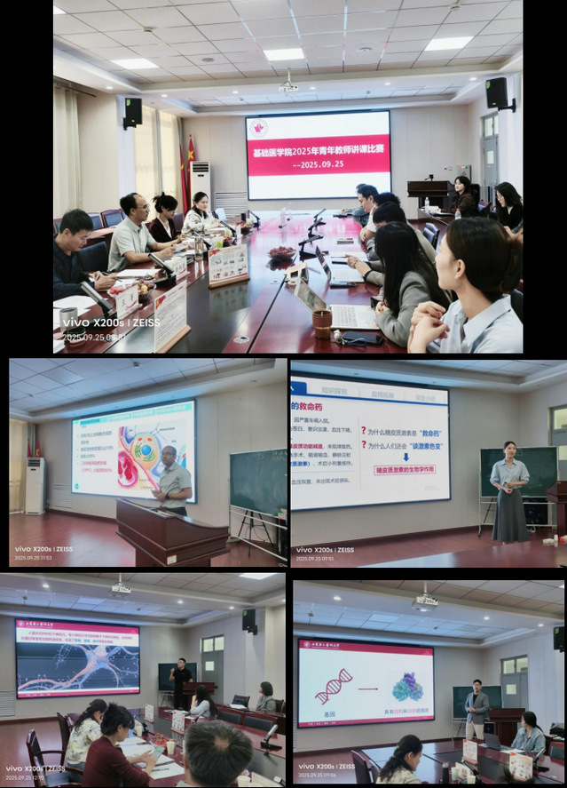 为加强青年教师队伍建设,提升教学能力,基础医学院于近日举办2025年度青年教师教学比赛。比赛评委由学院副院长刘建明,获得省教学成果二等奖以及在省级教学比赛中获奖的教师代表共同组成,参赛教师及入职三年内的青年教师参加活动。