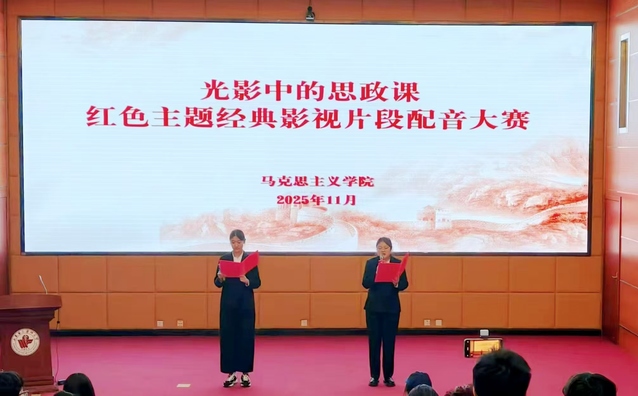 青年“声”动演绎,赤子诉说情怀,11月8日,马克思主义学院举办“光影中的思政课”红色主题经典影视片段配音大赛,思政课实践教学指导教师、41组参赛学生及学生观众近400人参加活动。