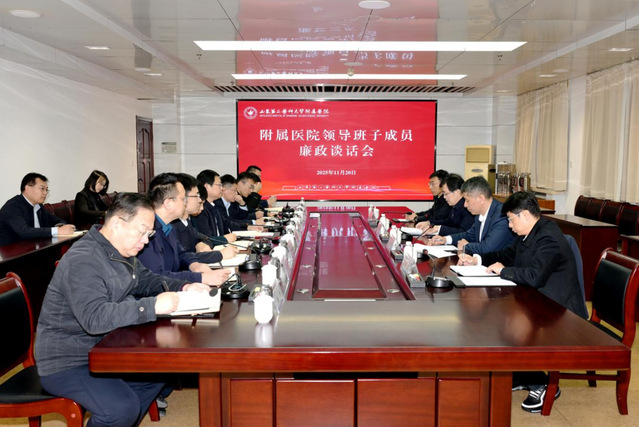 为深入学习贯彻党的二十届四中全会精神,进一步压实医院(学院)党委全面从严治党和党风廉政建设责任,扎实推进省委重点延伸巡视反馈问题整改工作,11月20日,学校召开附属医院领导班子成员廉政谈话会,学校党委书记张建华出席会议并作集体廉政谈话,副校长、附属医院(临床医学院)党委书记王承高代表医院领导班子作表态发言,学校纪委书记、监察专员孔令军主持会议,附属医院领导班子成员参加会议。