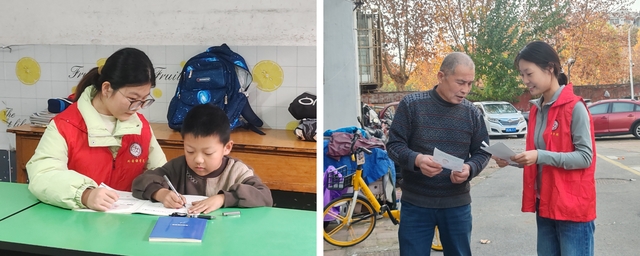 活动现场,学院党员志愿者团队结合社区居民实际需求,开展服务活动。在卫生安全宣发专区,志愿者们通过发放图文并茂的宣传手册、现场讲解示范等形式,向居民普及冬季传染病预防、家庭用电用气安全、垃圾分类规范等实用知识,引导居民树立科学健康的生活理念,增强安全防范意识。在社区青少年活动中心,大家化身“爱心辅导老师”,为社区儿童提供一对一学习辅导。志愿者们结合自身专业优势,针对英语单词记忆、课文朗读、作业难点等问题进行细致讲解,帮助他们梳理知识重点、掌握高效学习方法。同时,志愿者们还注重引导孩子们培养良好的学习习惯,鼓励他们树立积极向上的学习态度,现场学习氛围浓厚而温馨,得到了家长们的一致好评。