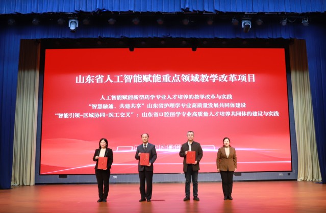 在AI+数智赋能教育教学变革专题会议,华东师范大学沈富可教授作题为《数智化助推高校教育变革》的专题报告;山东第一医科大学李福荣教授作题为《智慧课程建设与教学创新实践》的专题报告;山东第二医科大学刘建明教授作题为《AI赋能课程建设:打造复合型医学人才培养新范式》的专题报告。会议推介发布了“医有为大模型”“乐道小济”智慧助手。