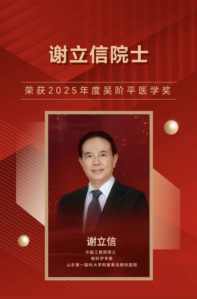 2025年度吴阶平医学奖、吴阶平医药创新奖经过初审、终审、公示,现已正式公布获奖名单。我校名誉校长、杰出校友、眼科学专家谢立信院士,因其在眼科领域作出的卓越贡献,荣膺2025年度吴阶平医学奖。