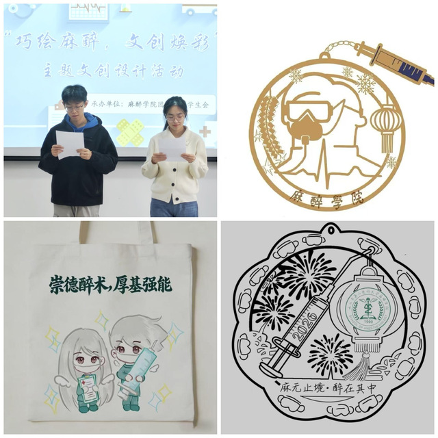 近日,麻醉学院举办“巧绘麻醉,文创焕彩”文创设计活动,活动以创意为桥,引导学子深耕麻醉学科使命,以文创为载体传递专业温度与担当。