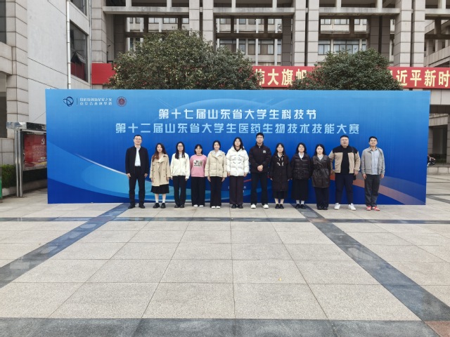 本次大赛是第十七届山东省大学生科技节赛事活动之一,共分为实验技能、创新和创业大赛三个赛道。来自全省各大高校的医药生物技术专业学生齐聚一堂,展开激烈角逐。通过参与本次竞赛,参赛同学们不仅锻炼了自己的科研实验能力,还与山东省的其他大学生进行了交流学习,拓宽了自己的视野。