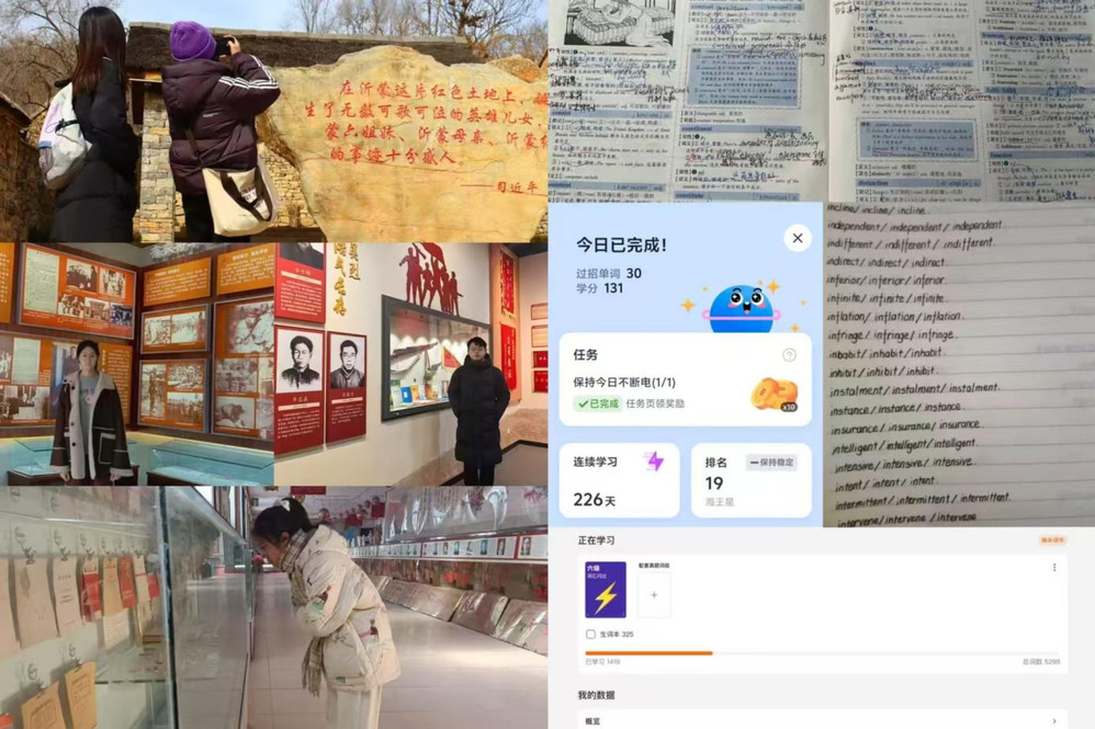 开展“以劳筑家,新春践学”主题活动,鼓励学生们在新春劳动中体悟“家”的内涵与文化魅力。学生们积极参与家庭大扫除、年货准备、贴春联、包饺子等传统年俗活动,用双手筑就温暖,以实际行动传承优良家风,在劳动中感受亲情与责任。推出寒假生活分享计划,号召学生们以短视频、照片配文字感悟等形式,记录早临床学习、实习辅导、社会实践等精彩瞬间。活动期间,学生们踊跃投稿,分享假期中的见闻与思考,在交流中相互启发,共同成长。“冬韵辞旧,单词筑新”寒假英语学习打卡活动持续进行,吸引众多学生积极参与,通过每日英语单词学习打卡的方式,保持学习状态,激发英语学习热情,为未来医学专业发展夯实语言基础,助力学业进阶。组织开展“追寻红色记忆·锻筑青春之魂”红色教育研学活动。学生们走进红色教育基地,瞻仰革命遗迹,聆听先烈故事,在沉浸式学习中厚植爱党爱国情怀,传承红色血脉,感悟信仰力量,进一步坚定理想信念。举办“青春留影,年韵随行”寒假学生证打卡活动,鼓励学生们走出家门,用镜头定格祖国大好河山,用文字记录家乡年俗文化。一幅幅充满烟火气的照片、一段段饱含深情的文字,展现了青年学子的青春风采与对地域文化的热爱。