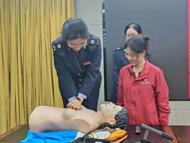 4月10日,学校实验实训部党支部党员、“军桥心跳行动”志愿服务队队员走进潍城区税务局开展心肺复苏术(CPR)、自动体外除颤器(AED)使用及海姆立克急救法等急救知识专题培训。