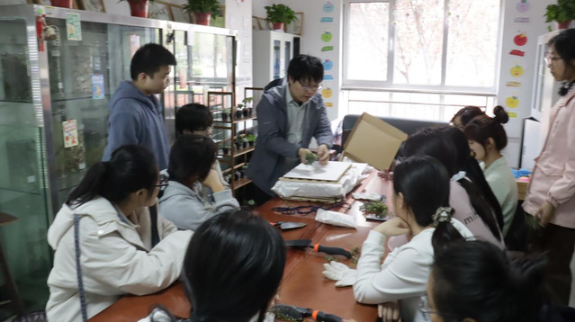 活动伊始,夏铭泽详细讲解了标本制作的完整流程,系统介绍了标本的组成结构、科学采集方法与长期保存的注意事项,为同学们梳理了从采集到成品的全链条操作规范。随后,以3人小组为单位,大家走进校园,实地开展标本采集工作。夏老师现场示范工具使用与规范采集技巧,手把手教学标本压制、整理、固定、标注等核心步骤,在实操环节针对学生遇到的植物辨认、采集手法等问题给予一对一指导,全程保障采集与制作的科学性与规范性。