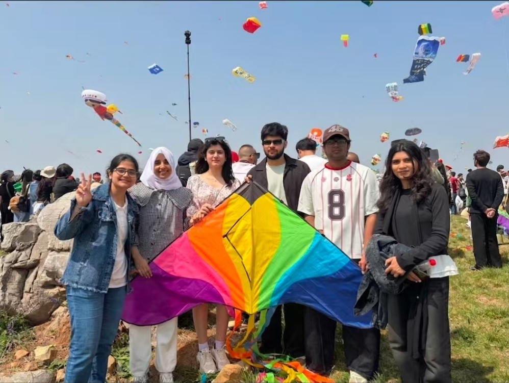 活动现场,风筝翱翔蓝天,学生们沉浸式感受风筝文化的独特魅力,在志愿者的引导下学习掌握风筝放飞的技巧,体验“脚踏实地 放飞梦想”的快乐与美好。来自巴基斯坦的国际学生杨齐表示,此次活动是一次难得的文化体验,不仅了解了潍坊特色风筝的制作技艺和文化内涵,也亲身领略了世界各地风筝交相辉映、中外文化深度交融的独特魅力。来自山东师范大学和鲁东大学的同学表示,在协助组织活动以及与国际学生交流中,将汉语教学与风筝文化传播有机结合,在实践中锻炼跨文化沟通,促进文明互鉴和民心相通,受益匪浅。