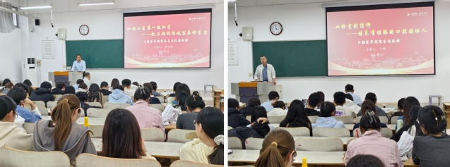 邱玉刚勉励同学们,一要充分认识实习的重要意义,理解实习是从理论走向实践的必经之路,是对专业知识的检验和职业素养的锤炼。二要以严谨态度投入实习,要勤学、苦练、善思,把每一个病例都当作教材。三要严守纪律,确保安全,严格遵守医院规章制度和医疗操作规程,注意人身安全。接着他以《扣好从医第一粒扣子:把正确政绩观写在诊室里》为题讲授思政课,结合正确政绩观学习教育,希望同学们:一要沉得下心,把“练真本领”作为最大实绩,踏实练好每项操作。二要受得住累,把“解患者痛”作为最亮勋章,以真心对待患者。三要守得住线,把“严于律己”作为最牢根基,扣好从医第一粒扣子,清清白白行医。丁刚以《从诊室到信仰:培养有根脉的口腔接班人》为题,结合行业趋势与职业发展为同学们作报告,希望学生将专业信仰扎根临床,做有根脉的口腔医学接班人。随后相关人员就实习流程、培养方案、实习大纲及纪律安全等事项进行了说明。学生代表周晓慧作了表态发言。