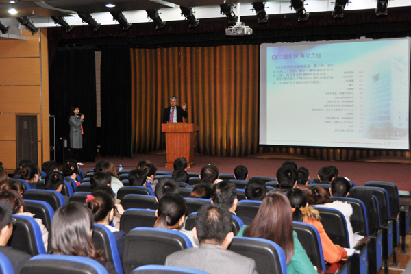 孙宏伟首先向蔡钟星博士一行来我校访问表示欢迎,并向来宾简要介绍了学校基本情况。双方就口腔医学科研、医疗方面的合作以及交流互访等深入交换了意见,达成了共识。会见后,韩国代表团实地参观了口腔医学实验室。蔡钟星博士为口腔医学院、附属医院口腔科教职医护人员和研究生、高年级本科生等作了题为《口腔种植手术新趋势及CADCAM技术》的学术报告。