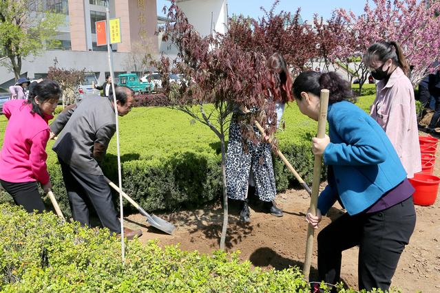 4月14日上午,机关党委联合后勤管理处党总支,组织党员干部参加校园义务植树活动。
