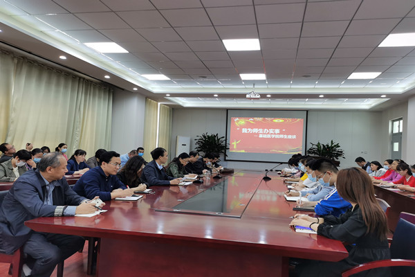 会上,学生代表针对基础医学院的教学管理、理论和实验教学、各项教学改革、考试考核方式方法、实验室建设及实验教学条件保障等方面与各学科教师代表展开深入讨论,提出了诚恳的意见及建议。教师代表也针对学生学习过程中遇到的问题和困惑进行了解答与指导,并鼓励学生们改变思维方式,提高自主学习能力,注重知识的内化与吸收,逐步建立临床思维方式,为将来成长成才打下坚实的基础。