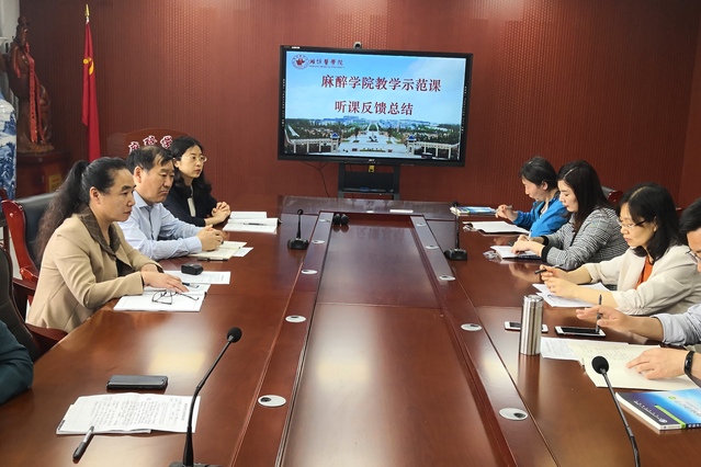 之后,参加观摩的老师在麻醉学院会议室对授课情况进行反馈总结,活动由麻醉学院党总支书记刘娜主持。与会人员从教学设计、教学内容、教学方法等方面谈了意见和建议,认为授课教师仪表整洁、备课充分、重点突出,注重引入前沿研究进展,起到了很好的授课效果;同时从强化教学设计、调动课堂气氛等方面提出了建议。
