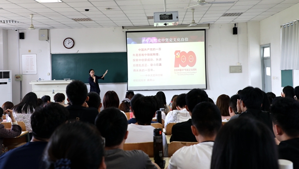 郎宁从“毛泽东思想和中国特色社会主义理论体系概论”课程的章节内容中选材,以“在学习党史中坚定文化自信”为题,从文化的内涵、坚定文化自信和提升中华文化软实力三个方面讲授了中国特色社会主义文化的历史底蕴和时代价值,深刻解读了我们国家从文化古国、文化大国到走向文化强国的历史必然和趋势要求。示范课坚持以学生为中心,教学思路清晰,教学内容逻辑关联性强,教学方法使用得当,学生听讲认真,取得较好的教学效果,展现了作为一名思政课青年教师的风采。课后,大家对此次示范课予以充分肯定,相互交流了观摩体会。