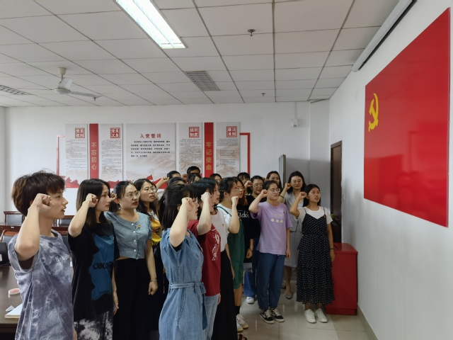 学生党支部书记带领支部全体党员重温入党誓词,大家用饱满的热情、昂扬的斗志表达出了作为一名共产党员的自豪感与使命感,表达了对党忠诚的意志和信念。