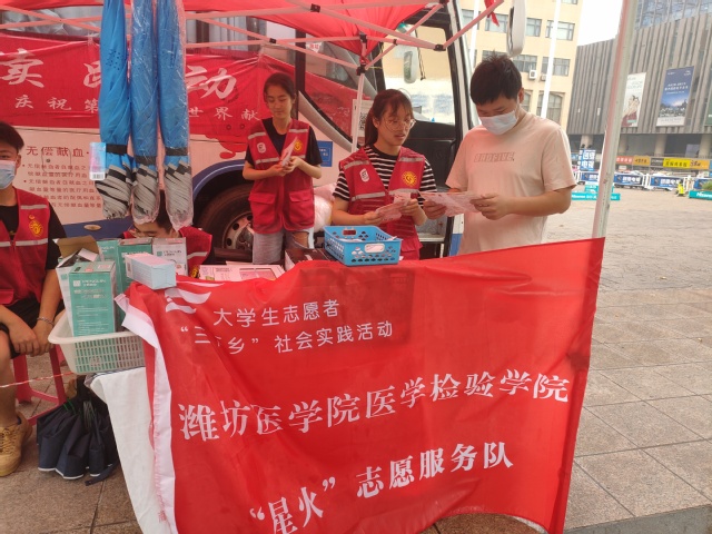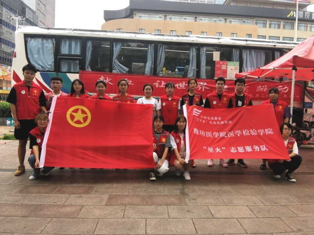 近日,医学检验学院“星火志愿服务队”与潍坊市中心血站合作,组织前往泰华城献血点、城东献血点、城西献血点开展以“献血志愿行,夏日显温情”为主题的暑期“三下乡”社会实践活动。青年学生在社会实践中受教育、长才干、作贡献,进一步增强责任感和使命感。星火志愿服务队指导老师、15名星火志愿服务队成员以及潍坊市中心血站医护人员参加。