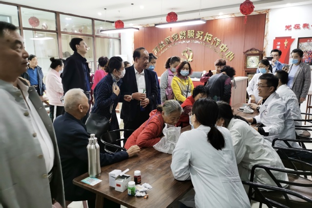 10月14日下午,麻醉学院党总支书记刘娜带领部分党员志愿者和麻醉学院校友到月河社区“双报到”,开展“庆祝建校70周年——麻醉学院党员进社区、办实事”义诊活动,以实际行动奉献社会,向校庆献礼。