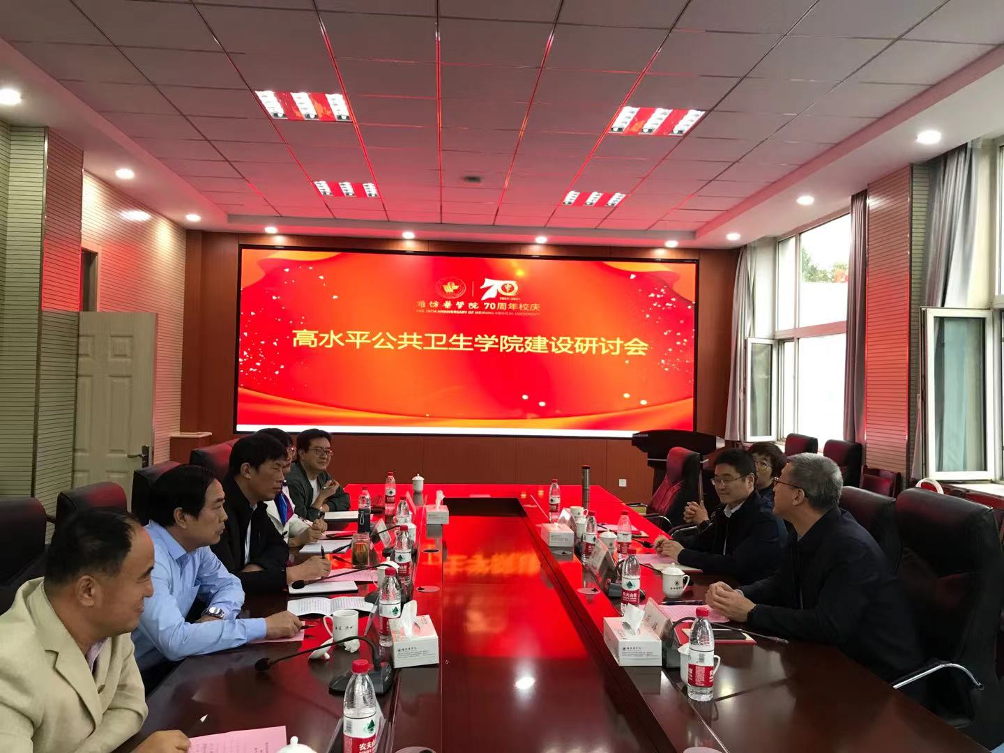 10月15日下午,作为校庆70周年活动之一,高水平公共卫生学院建设研讨会在潍坊医学院浮烟山校区科技楼B205会议室举行。山东第一医科大学公共卫生学院院长史卫峰,淄博市疾控中心主任崔峰,青岛市疾控副主任段海平出席,公共卫生党委书记王培承,副院长郑文贵,各专业负责人及部分教研室主任参会。