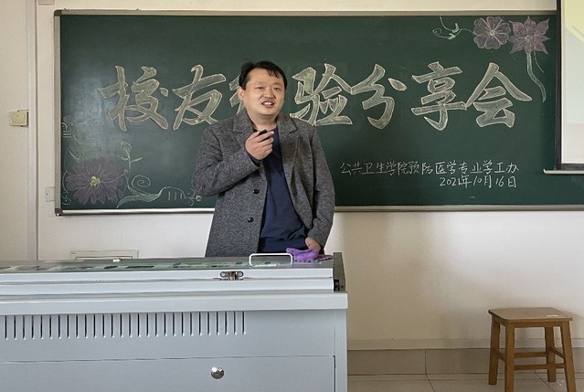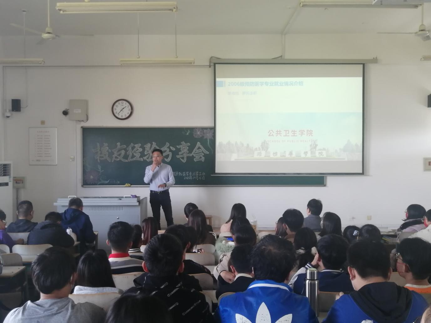 正值校庆70周年之际,公共卫生学院于10月16日下午,在浮烟山校区D402教室举办校友经验分享会,张海鹏、赵恒、赵慧男、李健等四位预防医学专业2006级校友与同学们进行分享交流,预防医学专业学工办辅导员、在校生积极参加。