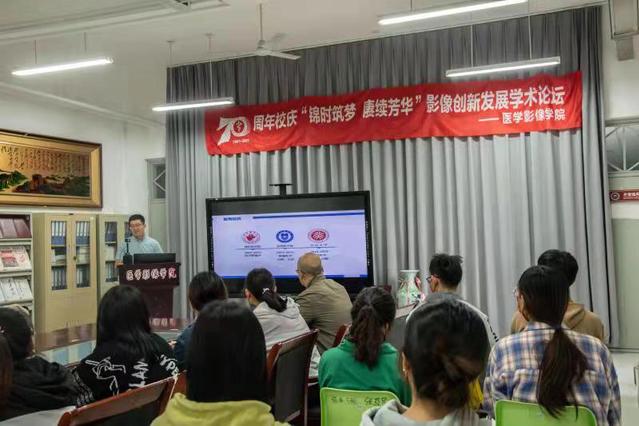 在庆祝学校建校70周年之际,10月15日至16日,医学影像学院举办校庆系列学术交流活动,邀请山东大学齐鲁医院放射科副主任于德新、青岛大学附属医院乳腺影像科主任陈静静、烟台毓璜顶医院大数据与人工智能实验室主任毛宁、潍坊新力超导磁电科技有限公司总经理张义廷来校进行学术交流并作专题报告。医学影像学院师生参加。
