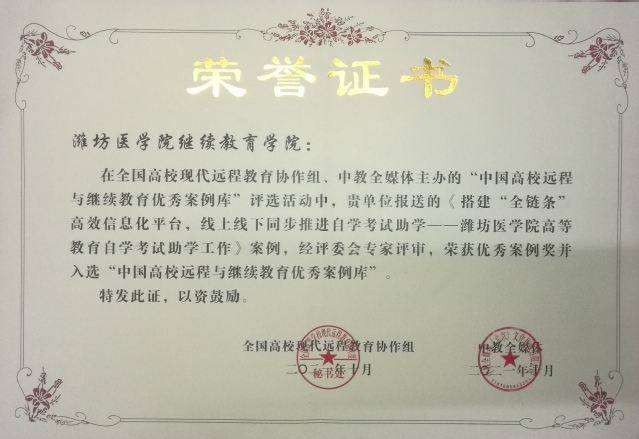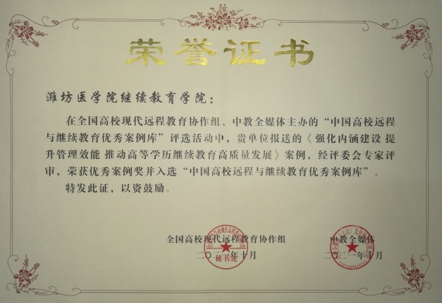 10月21-22日,2021中国远程与继续教育大会在北京召开。会议举行了“2021中国最具社会影响力高校网络与继续教育学院”“2021中国高校远程与继续教育优秀案例库”与“2021年度中国高校继续教育优秀函授站”颁奖典礼。我校继续教育学院被评为“2021中国最具社会影响力高校网络与继续教育学院”;申报的两篇案例全部入选“2021中国高校远程与继续教育优秀案例库”,其中《搭建“全链条”高效信息化平台,线上线下同步推进自学考试助学》案例被专家在评审会上特别表扬;3个校外函授站被评为“2021年度中国高校继续教育优秀函授站”。