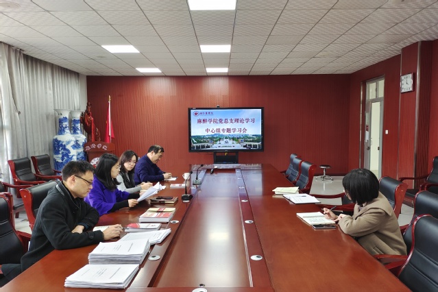 11月15日,麻醉学院党总支理论学习中心组在学院会议室召开会议,学习贯彻党的十九届六中全会精神。党总支书记刘娜主持会议,学院党总支班子成员参加专题学习。