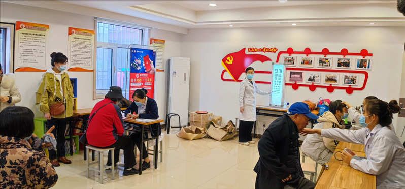 此次义诊活动邀请了潍坊医学院附属医院眼科中心的医疗专家团队,为社区居民进行了眼健康检测、血压测量等健康查体和诊疗服务。在活动过程中,师生向居民发放了健康保健知识宣传材料,针对高血压、糖尿病等常见疾病的预防、治疗以及日常保健进行了知识宣教。专家们对居民关心的健康保健问题进行了现场解答,并鼓励居民们定期进行健康评估,做好控烟、控酒,倡导低盐、减油、减糖饮食,还特别就疫情期间居民健康管理提出了具体的建议与指导。