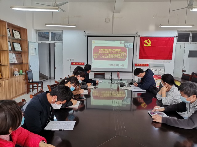 4月15日,心理学院党总支组织全体人员集中学习了学校《2022年工作要点》《2022年党建工作要点》《2022年党风廉政建设工作要点》文件精神,会议由心理学院党总支书记刘宪亮主持,全体教职工参加。