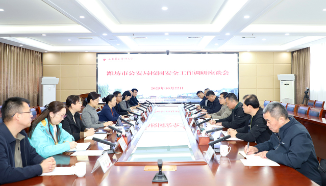 潍坊市公安局潍城分局相关负责同志,学校宣传部(教师工作部)、统战部、学生工作处、团委、国际合作交流处、保卫处、网络信息中心等部门负责同志参加调研座谈。