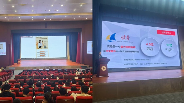 任云竹集中讲解了超星读秀、百链、发现等超星系列数据库的具体使用方法,重点围绕每种数据库的访问方式、服务机制、核心功能等进行了细致阐述;并结合案例就目录查询、文献传递、知识挖掘、AI检索等专业层面从数据资源整合、关键词提炼、知识点阅读服务等角度向读者展开了一幅数字化时代高效利用图书馆纸电资源的智慧图景。现场学生积极提问交流,互动氛围热烈。