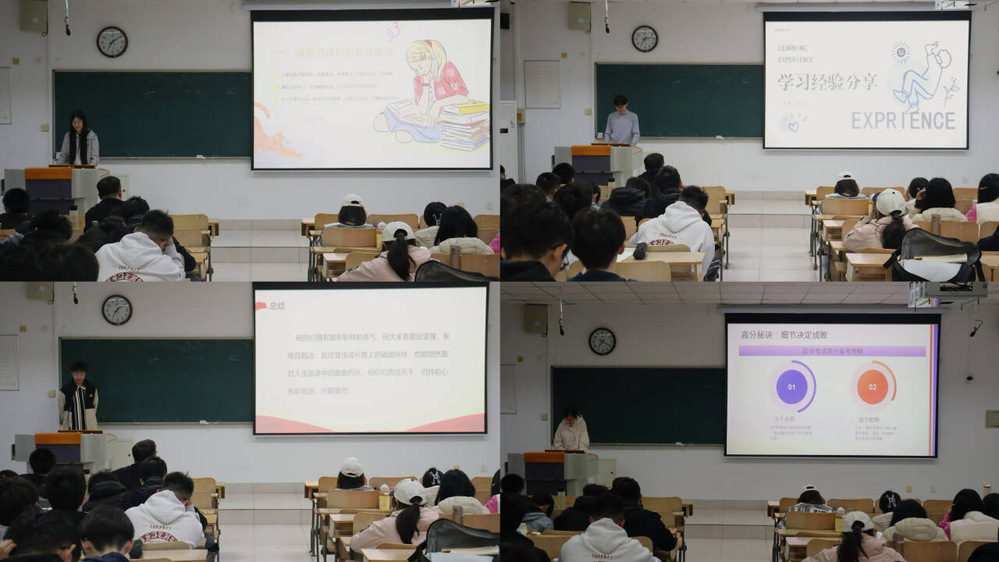 倾囊授干货,聚力共成长。分享会上,四位主讲人结合自身学习历程,围绕课堂效率、时间管理、科目备考、心态调适、综合发展等维度展开分享,为在场同学提供可借鉴、可落地的学习思路。张湛昀聚焦医学学习全流程,强调专业学习、英语能力与综合素质测评协同发展,分享系统解剖学、组织胚胎学等基础课程的学习技巧,并推荐实用刷题资源,提醒大家重视日常积累与实践锻炼。徐雨涵从高效学习与心态管理两个角度,分享课堂紧跟思路、课后及时复盘、合理安排时间、理性看待成绩、立足课本夯实基础以及灵活运用记忆法等经验。张嘉齐围绕兴趣驱动、持续深耕、积极挑战、平衡发展展开分享,建议大家以兴趣为学习动力,同步提升专业、科研与英语水平,主动参与学科竞赛,兼顾学业与生活,实现全面发展。樊可誉以“稳扎医学路,笃行向微光”为主题,分享以课本为核心、先背诵后刷题、强化记忆、科学备考与规范应试的学习策略,鼓励同学们找准方法、持之以恒、扎实走好医学之路。
