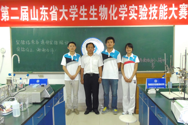 近日,我校以药学专业2011级赵文涛、李珊珊、王英全为成员的代表队在6月23日举行的第二届“山东省大学生生物化学实验技能大赛”决赛中,发挥出色,荣获一等奖,药剂学教研室李万忠副教授被评为优秀指导教师。