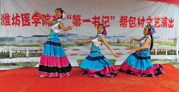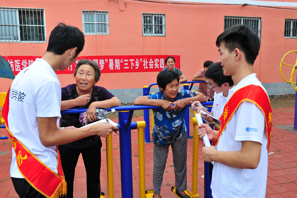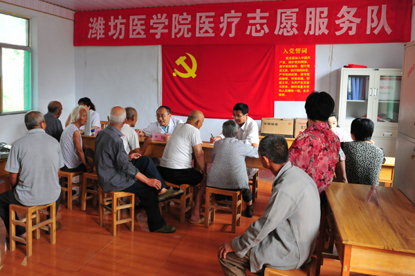 雨后的小村庄,格外清凉。师生们放下行李就忙碌起来,服务团分成五六个组,各负其责。有的去困难党员和困难农户家中走访慰问;有的布置舞台准备晚上为村民们献上精彩的文艺演出;有的协助医疗专家开展健康普查和疾病诊疗服务。“潍坊医学院大学生社会实践基地”的牌子挂在村里两年了,通过基地共建和与“第一书记”帮包村的互动合作,我校将“三下乡”变为“常下乡”,为学子们走进农村、了解农村、服务农村提供了广阔舞台。