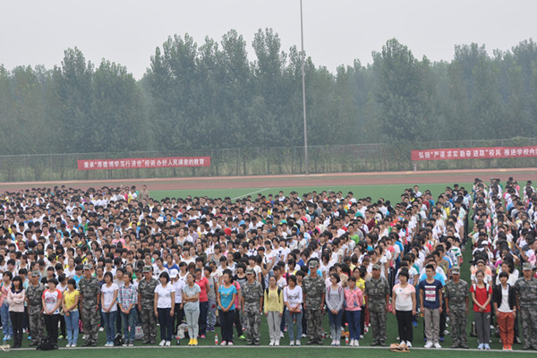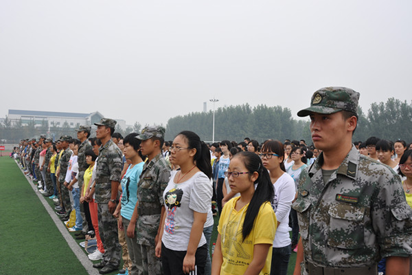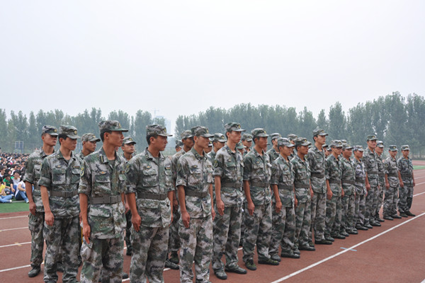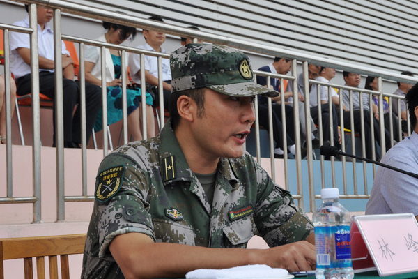 承训部队教导员、军训团团长林峰代表全体施训教官讲话,表示要严格管理,严格施训,高标准完成本次大学军训任务。参训学生代表王瑞良在大会上发言,代表全体学员郑重承诺:服从命令,刻苦训练,努力拼搏,超越自我,努力上好大学第一课。