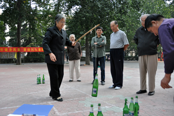 今年我校老年运动会的主题是:运动、健康、快乐。比赛共设套圈、飞镖、摆硬币、钓瓶等10个项目,年龄最大的队员85岁,本届运动会参赛人数之多,参赛人员年龄之高都超过了历届。通过比赛,老同志们赛出了风格,赛出了水平,增进了友谊。赛后他们也纷纷表示今后要坚持老有所乐、老有所学、老有所为,继续为我校的发展贡献自己的一份力量。