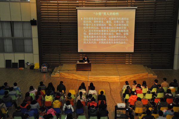 丰云从严歌苓作品的典型人物“地母女人”和“小资男人”切入,为大家讲解了作品《少女小渔》、《小姨多鹤》、《一个女人的史诗》中女主人公的母性、雌性、佛性等特点,同时又通过《人寰》、《陆犯焉识》中男主人公优越的出身、秉性善良、宽容、自尊心强但懦弱等特点诠释了小资男人的形象。丰云用形象生动的语言和真挚细腻的描述让在场师生领略作家严歌苓文学作品的文化内涵。为潍医大讲堂增加了文学气息。