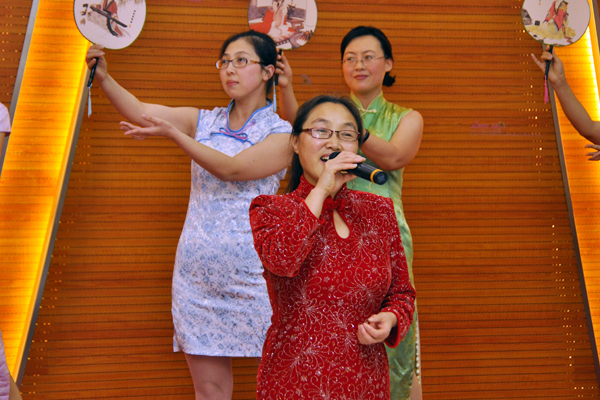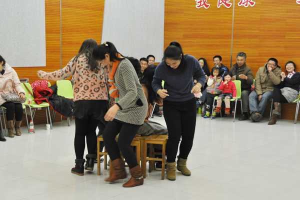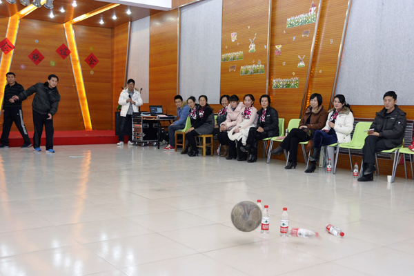 联谊会上,教职工自编自演的20个节目依次登场。有激情四射的排舞,有旋律优美的小合唱,有刚柔并济的太极扇、武当剑表演,有脱口秀三句半表演等。节目个个精彩,现场气氛热烈,活动中穿插的抢凳子、迷你保龄球互动游戏,更是点燃了大家的热情。联谊活动在经典歌曲《山楂树》的歌声中结束。